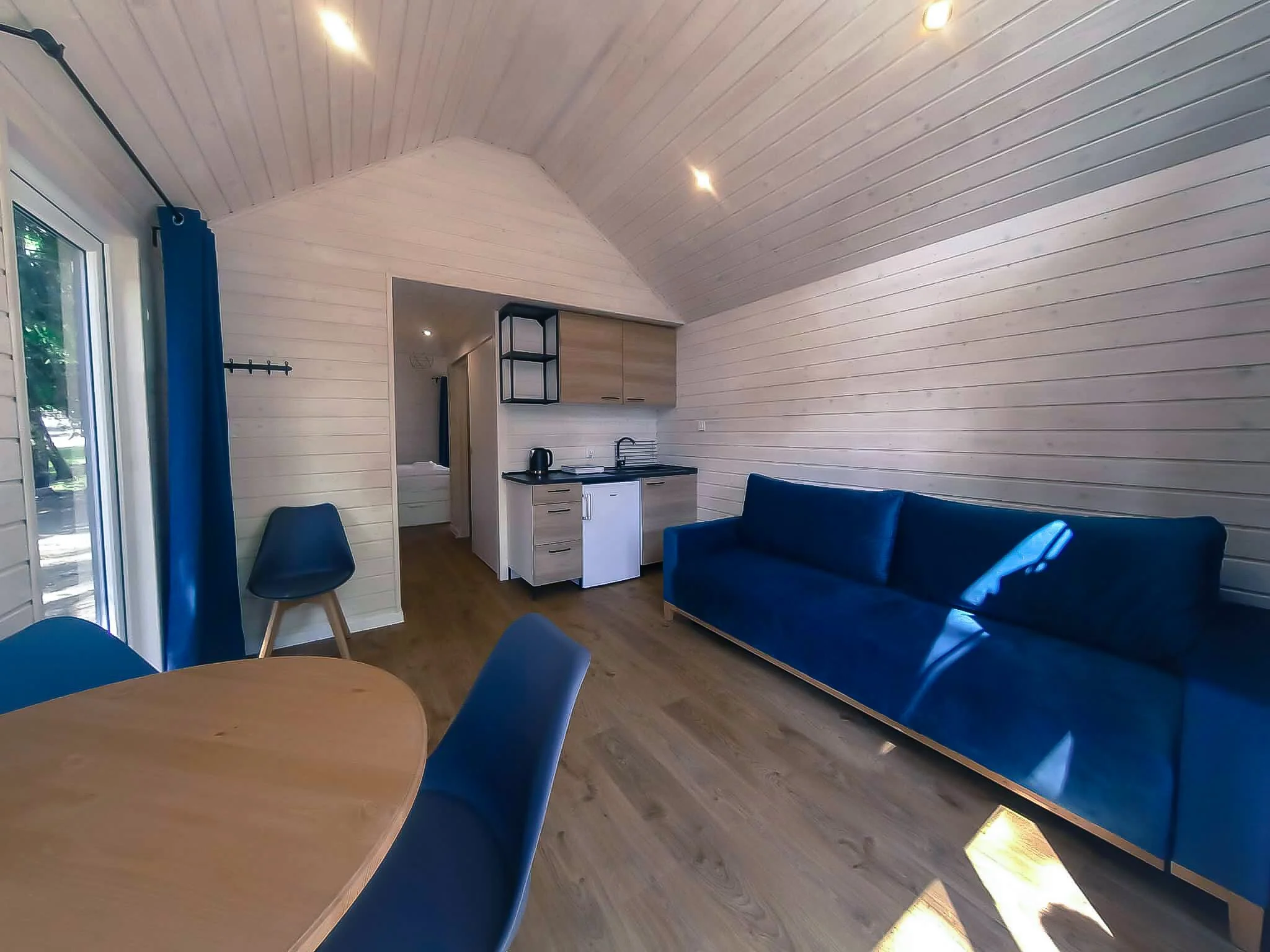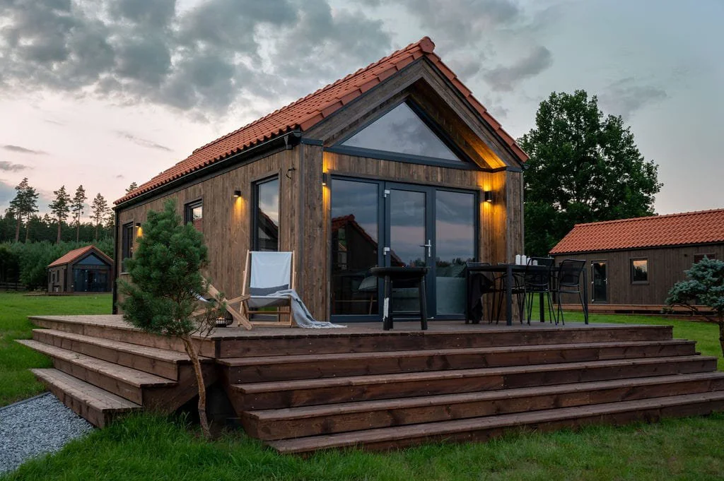 We present a compact, wooden mobile home built using a timber-frame structure— perfectly suited for small plots or leased land designated for leisure use.