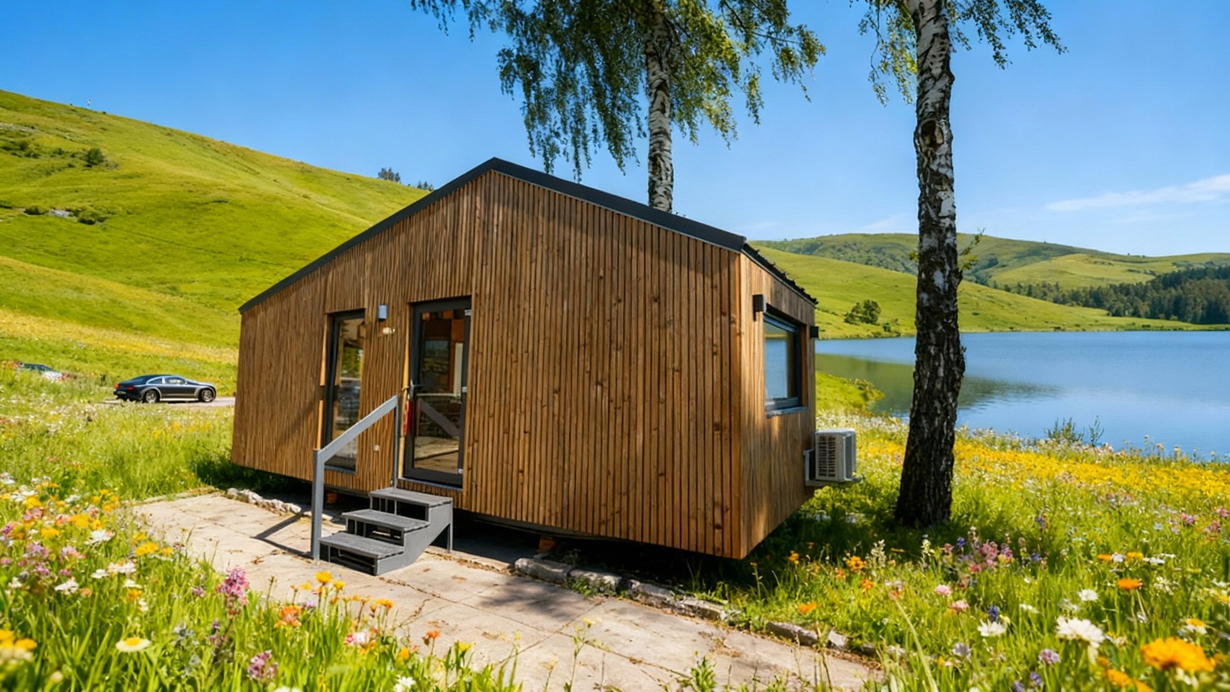 The Ayr Style House: modern, comfortable, and mobile. The Ayr Style Dutch house is an innovative option for those seeking a modern and comfortable living solution. It is ideal for small plots or recreational areas, combining functionality with aesthetics. Its sturdy construction, made of wood and steel, provides both durability and elegance, tailored to the needs of contemporary users.