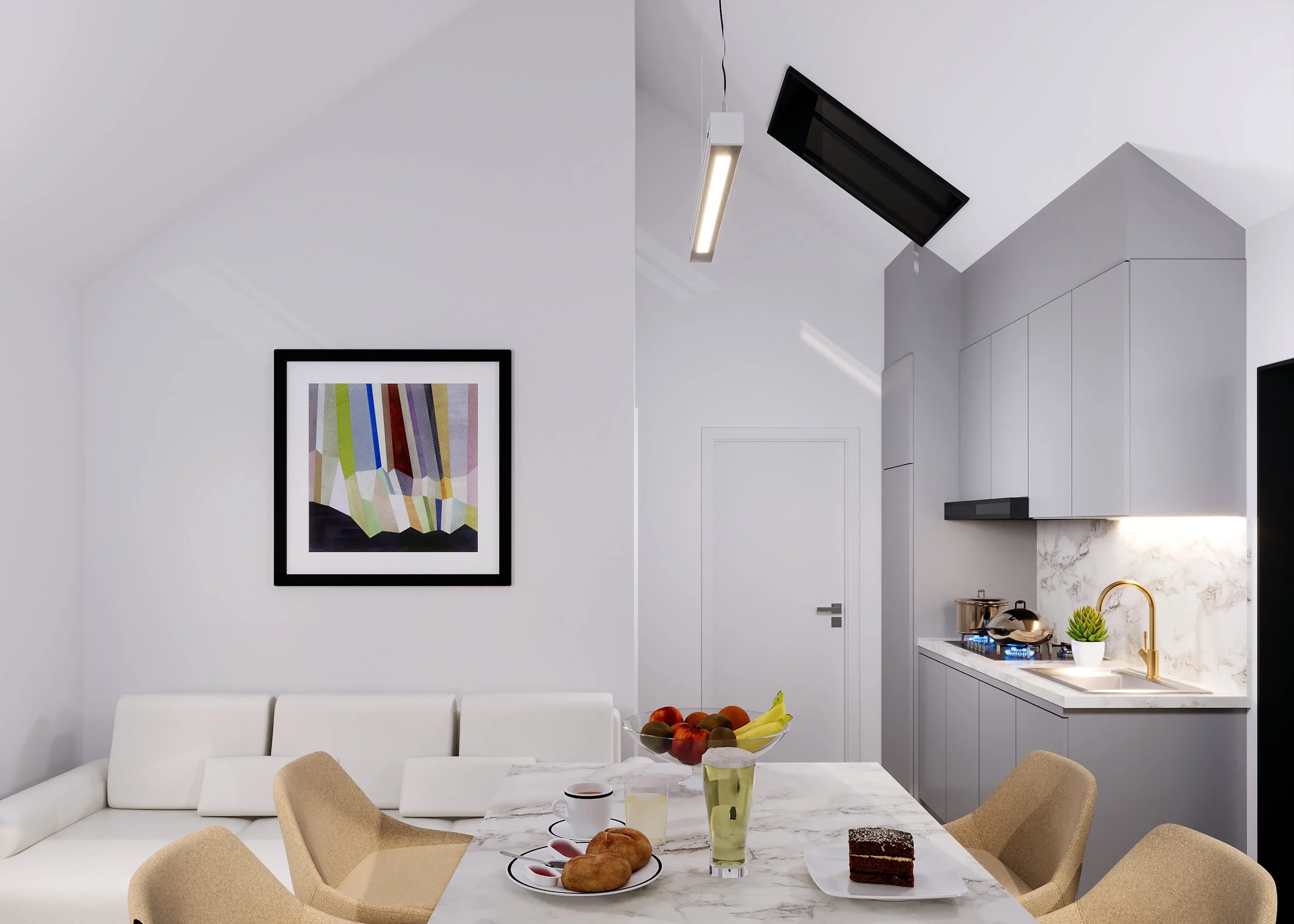 Eco-friendliness and Energy Efficiency: The structure is based on C24 timber, mineral wool, Fermacell boards, and corotop membranes, providing excellent thermal insulation, a healthy microclimate, and durability.